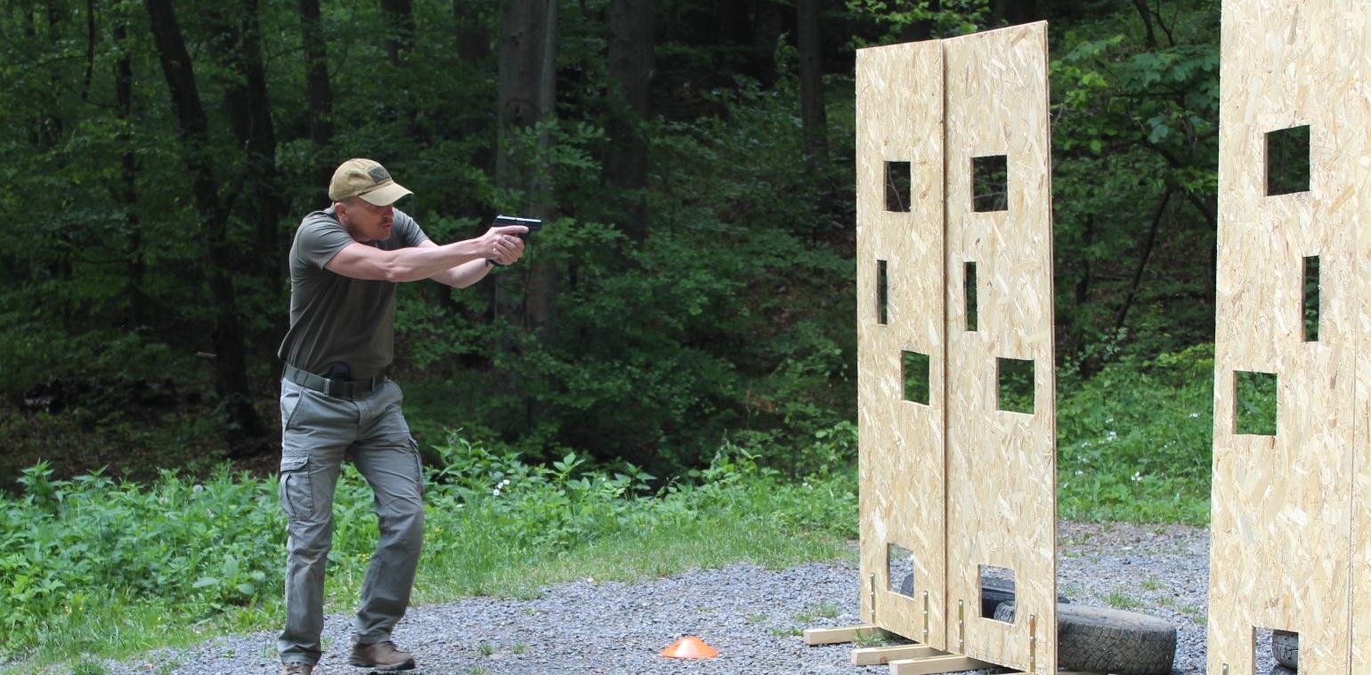 Pistolový Střelecký trénink zaměřený na řešení modelových situací. Při tréninku je možno použít pušky s konverzí .22 LR.